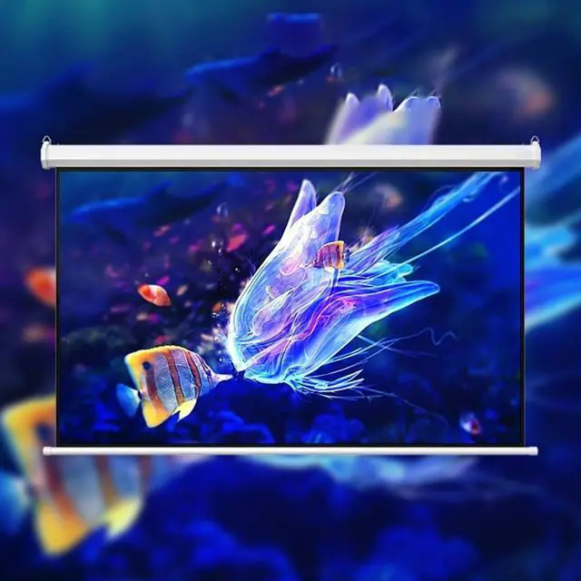 Quick installation: The projector screen can be mounted on a wall or ceiling, as well as used using scrolls