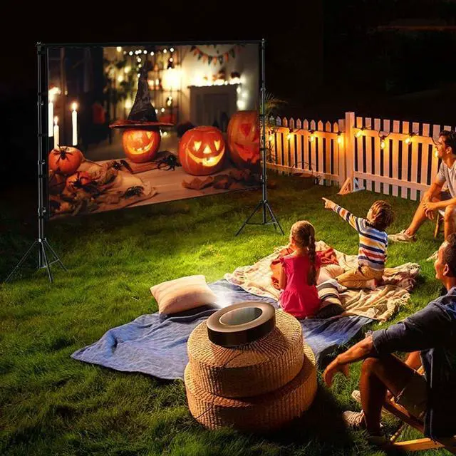 Portable movie screen can be used for home, camping, travel, classroom, office, cinema, theater, etc., also can be used for other displays and presentations