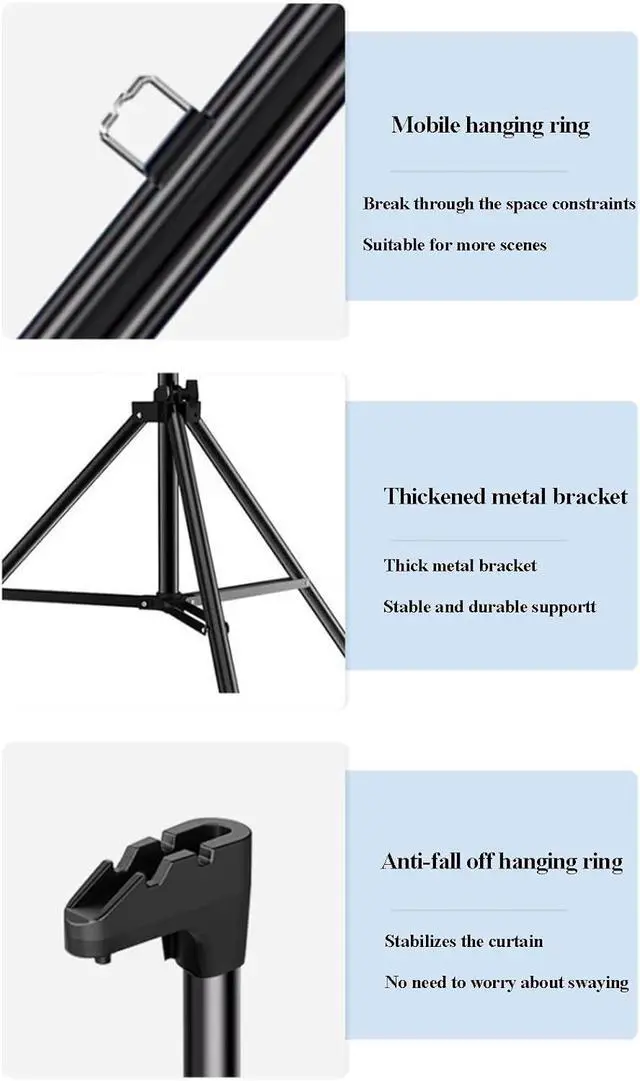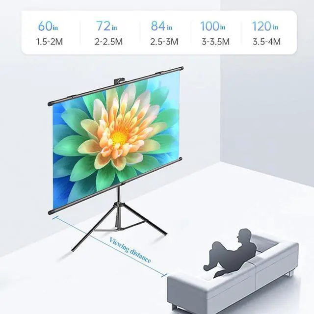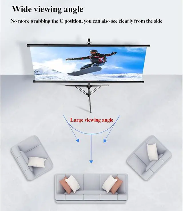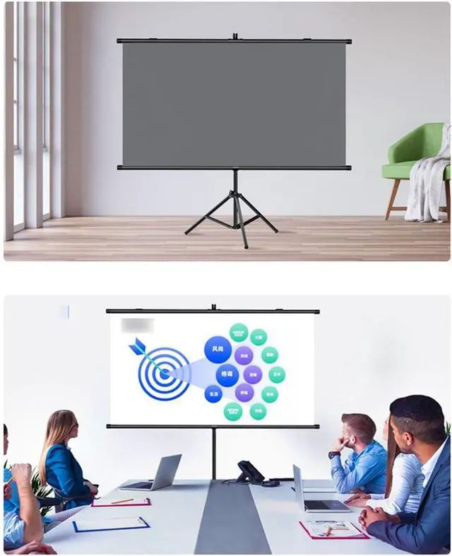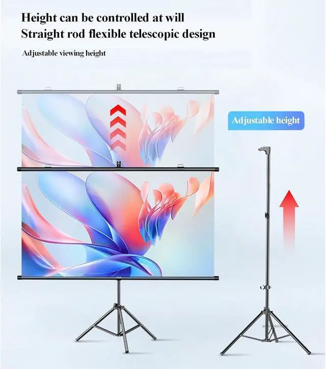 PROJECTOR SCREEN: The tripod for the projector screen with stand is made of sturdy metal with a thick main pole and 4 sturdy diagonal poles, and aluminum tubes with spring tension at the end to keep the entire projector screen structure stable, with free height adjustment