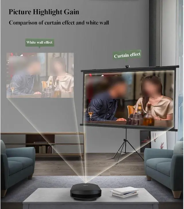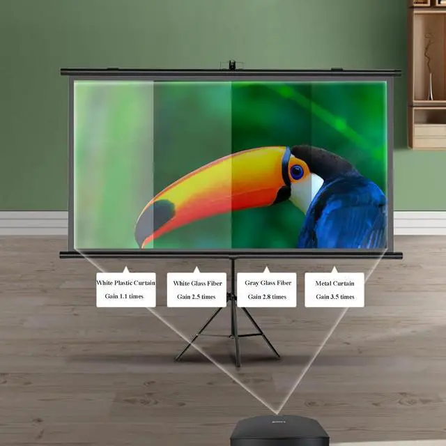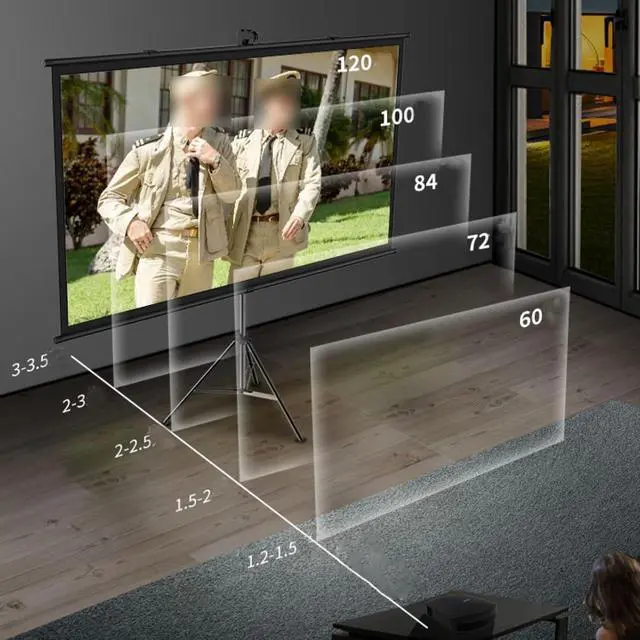PROJECTOR SCREEN 80 INCH: The size of this premium screen with 4:3 , 16:9 format can meet most of your applications, the tension of tubes makes a flat surface, with high gain factors on fabric, it will gives you a perfect picture
