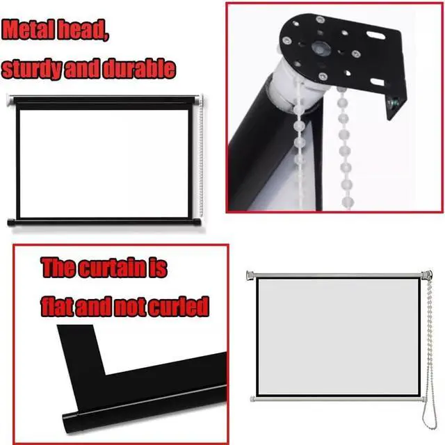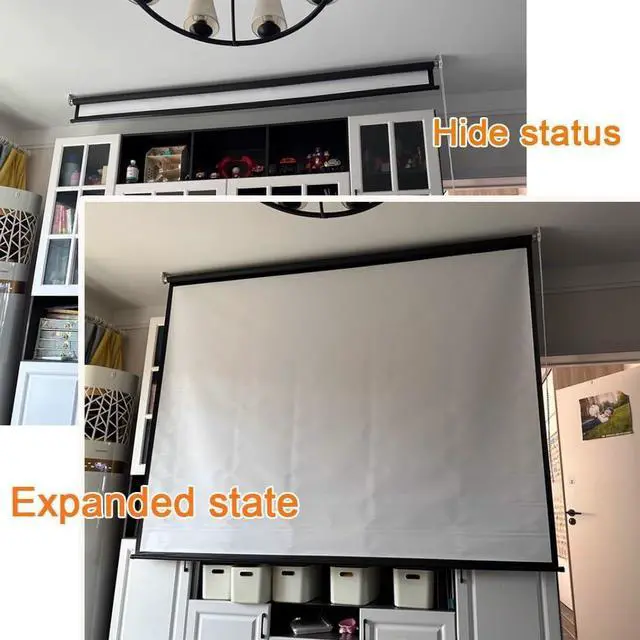Manual telescopic: Adjustable projection screen size, with a roller design that can also be used as blackout curtains; simply pull the bead chain to open, close, or store, making it easy to operate