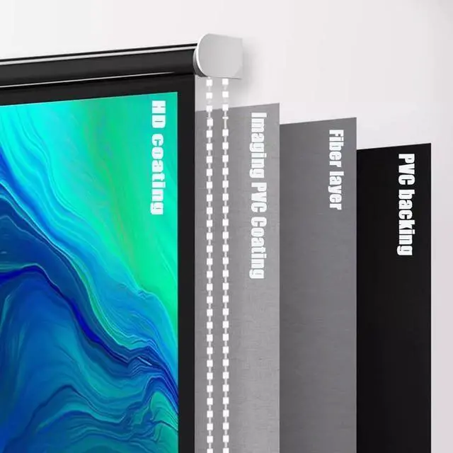 High-definition material: The manual retractable projection screen is made of white fiberglass, naturally stretched, with good flatness and stability. The added optical coating makes the projection clearer