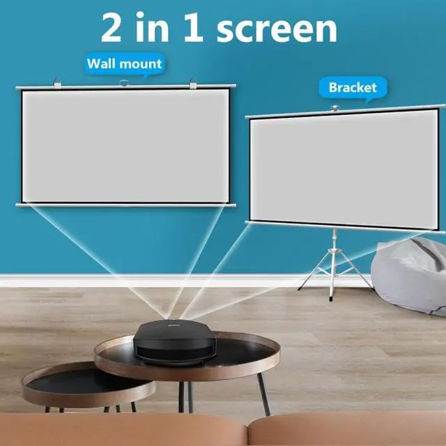 Portable and Easy to Store Design: The screen can be rolled up and stored when not in use, saving space. The built-in bracket makes this projection screen easy to use, and you can enjoy large-screen viewing anytime, anywhere