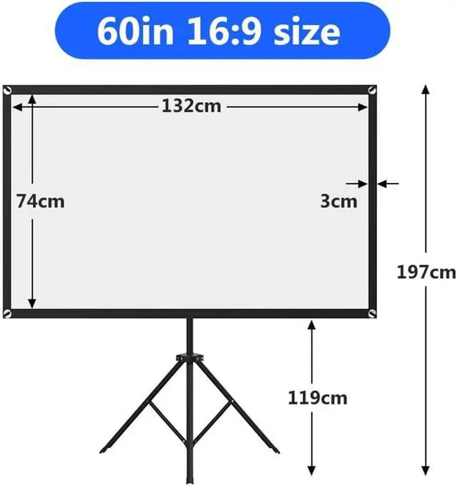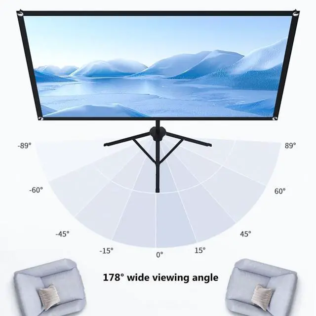 Quick Installation and Use: No complex tools are required. This outdoor projection screen comes with a stand, which can be easily expanded and used. The black edges around enhance visual contrast, allowing you to quickly enter the movie viewing state