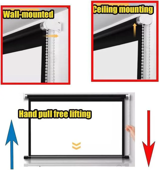 Versatile Use: This retractable movie screen can be installed on the ceiling or wall for projection, or placed by the window to function as a curtain