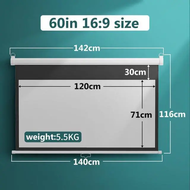 Convenient Manual Pull-Down Design: The pull-down movie screen design is adopted, which can be easily unfolded for use, and rolled up and stored without taking up space, meeting the needs of watching movies anytime and anywhere