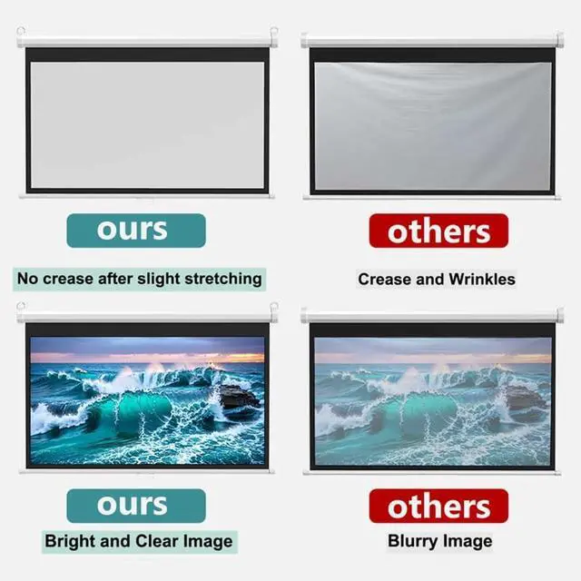 Easy to Install: The projection screen is equipped with a sturdy painted shell, supports wall-mounted or ceiling-mounted installation, and is simple and quick to install, making it easier to use