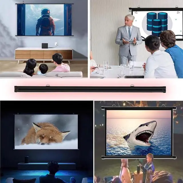 Storage: This portable projection screen is small and lightweight, and can be easily rolled up when not in use, saving space. The retractable design is suitable for indoor and outdoor use, simple and clear.