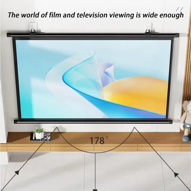 • Durable: The manual projection screen is stain-resistant, anti-bending, sturdy and durable. Piano paint appearance, dustproof and stain-resistant, wall-mounted upper and lower rods, flat curtain, bringing a better viewing experience