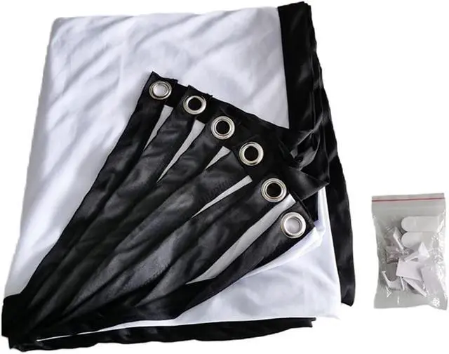 3.HASSLE-FREE SETUP - Projector screen without frame and have metal holes, you can use nails, hooks, ropes, or double-sided tape to hang it.