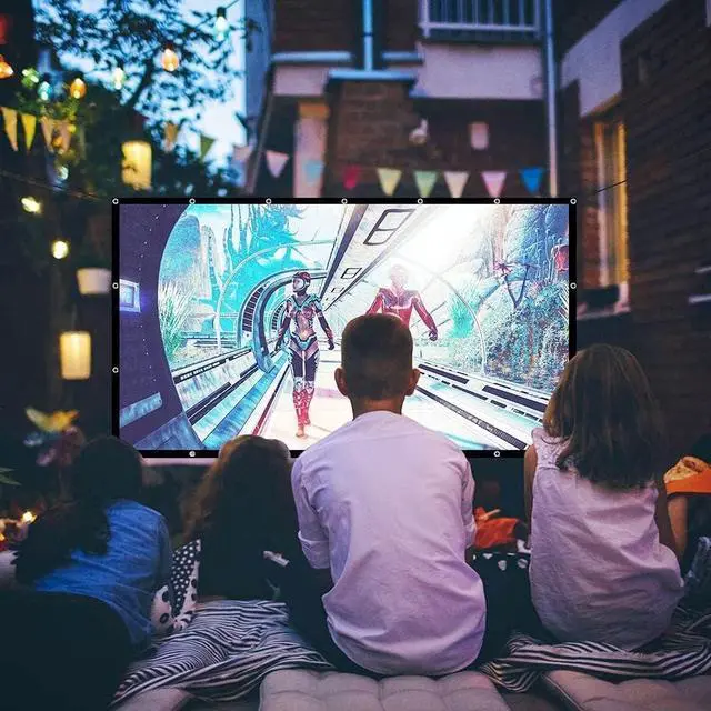 • EASY TO CARRY: Easy to store and carry outdoor movie screen This projection screen is made of synthetic polyester fiber, durable and durable. It is easy to carry in your backpack or handbag.
