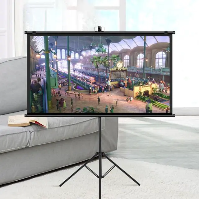 [Easy to operate] It only takes two minutes to assemble. Just open the tripod, pull up the screen and hang it on the hook. The screen height can be adjusted via the handle on the stand. No screws or special tools required. Rolls up for storage for easy assembly and transportation.