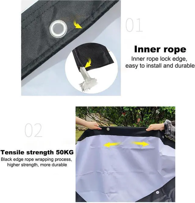 Convenient installation, stable fit: The inner rope lock edge design is adopted, which makes the installation method easier and reduces wrinkles. The screen can fit the frame or wall flatly, ensuring that the picture is not deformed during viewing, and the visual experience is better.