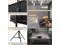 Material of projection screen with stand: white fiberglass wrinkle-free design with all-black back eliminates light penetration and can be easily cleaned with a damp cloth. Tripod provides excellent stability during use and folds easily for portability and storage.