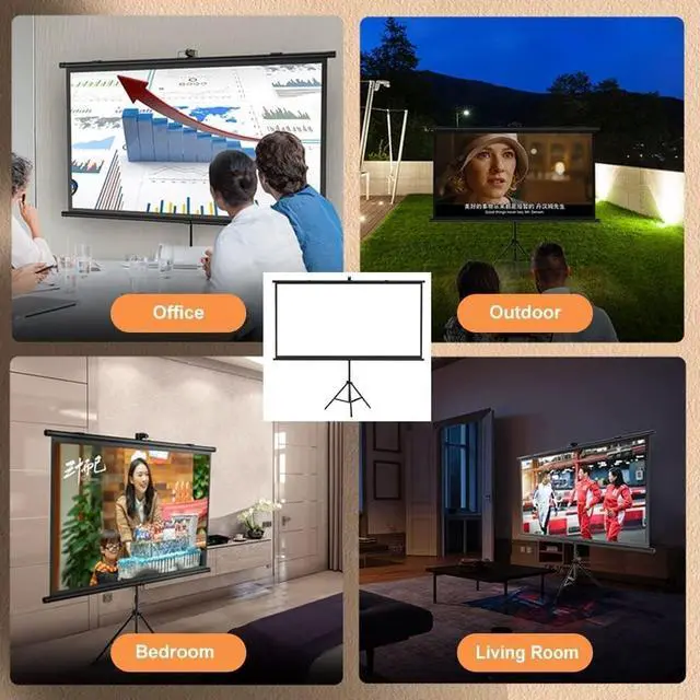 MULTI-PURPOSE: You can put this projection screen with stand anywhere indoor or outdoor, such as living room, garden, backyard, classroom, etc. You can enjoy the big picture with your family or friends and have fun. Home theater Meeting room presentation Classroom training course Wedding and party etc.