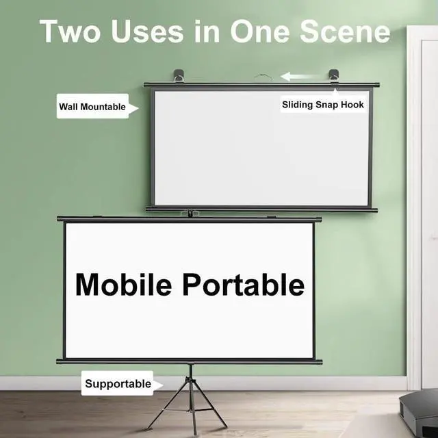 • TWO IN ONE PROJECTION SCREEN: Wall mounted/triangle support projection screen won't hurt the wall, can be used with stickers, removable buckle on the top, no need to punch holes, more convenient to install.