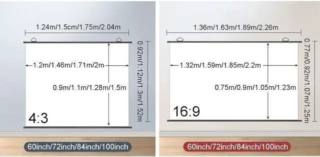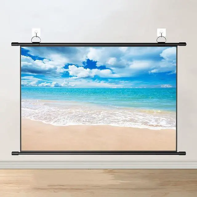 Save space: The portable projector screen can be scrolled upwards and will not take up extra space after storage. The top hook is designed to move freely and can be hung easily under any circumstances.