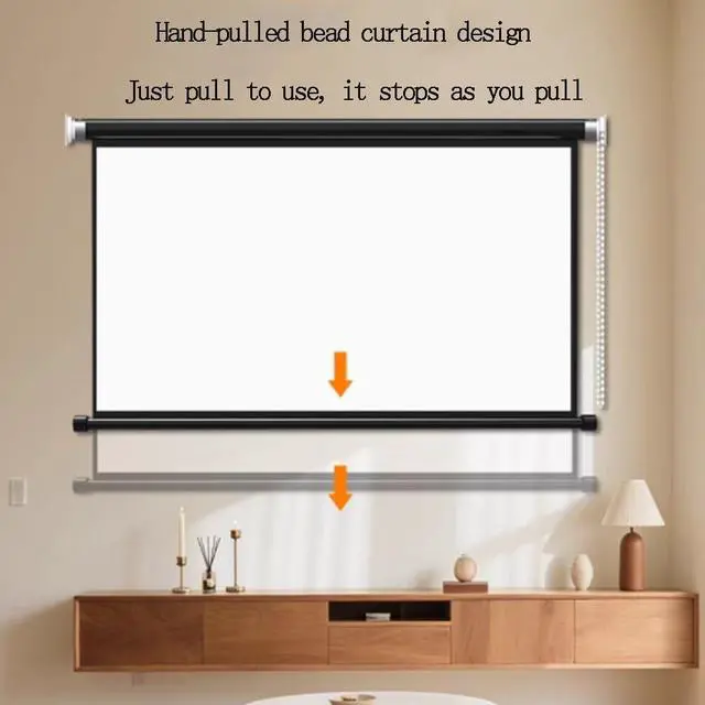 Manual pull-down projection screen, designed with a hand-pulled bead chain, can be pulled out or retracted as needed, ready to use once pulled, stopping wherever you want, convenient and quick.