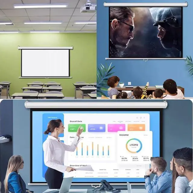 Automatic Locking Mechanism: Easily pull down the screen to the desired height, and it locks automatically, ensuring a secure setup and perfect viewing height every time.