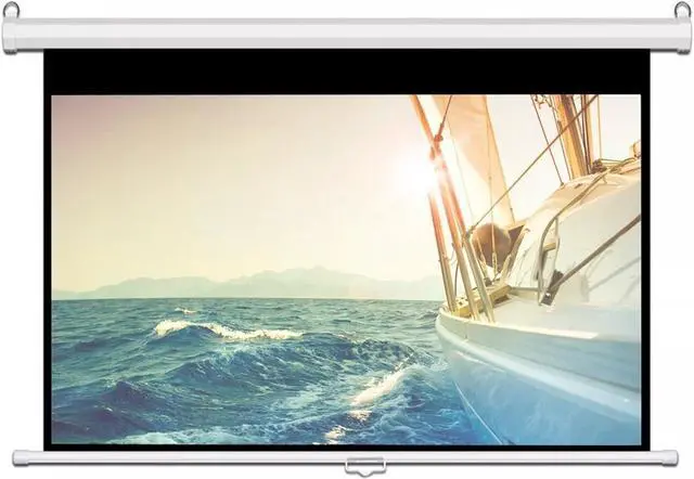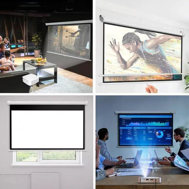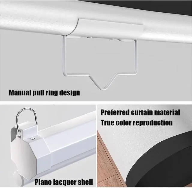 Material metal casing design can effectively prevent damage and deformation during transportation. The projection screen is made of multi-layer composite fabric for a smoother and flatter surface, and the all-black back panel eliminates light penetration for excellent projection quality. You can easily install it on the wall, ceiling or anywhere in your home