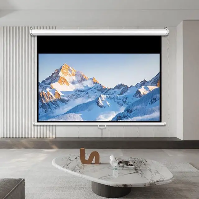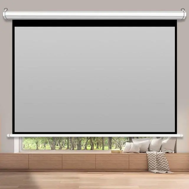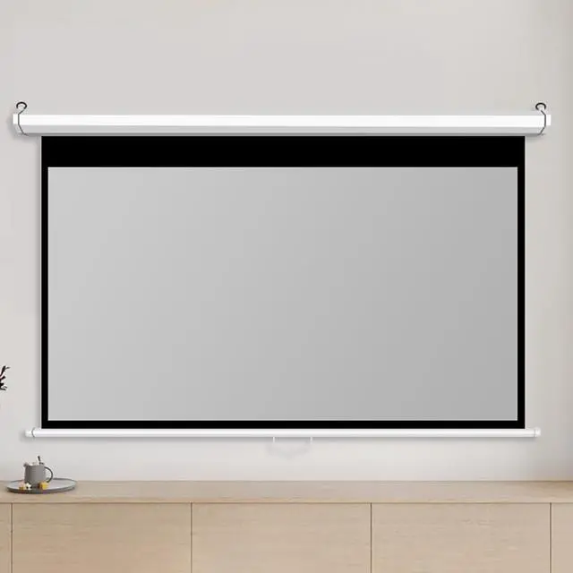 Self-locking hand-pulled projection screen: hand pull lifting, no need to plug in, pause and let go to the required height, the screen will be automatically locked when the screen is rolled back, gently pull the screen down, the screen can be automatically unlocked and rolled back up;