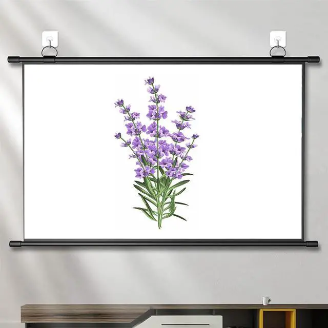 ? Space Saving----The portable projector screen can be rolled up and will not take up extra space after storage. The top hook design can be moved freely and can be easily hung in any situation.