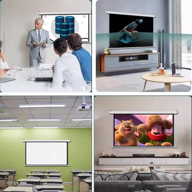 Wall-mounted projection screen: The projection screen has a built-in L-shaped bracket and pre-drilled holes, so you can easily mount the screen on a wall or ceiling for office presentations, outdoor backyard movies, or home theater