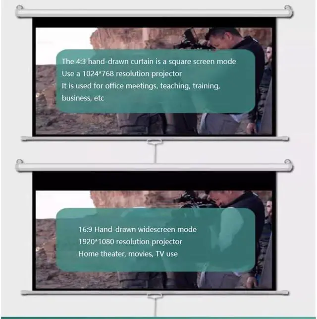 160-degree viewing angle: Since there is a 160-degree viewing angle, you don't have to sit right in front of the drop-down screen, and you can get a good viewing angle from different positions. In addition, cinema screens are compatible with most LED, LCD, or DLP projectors