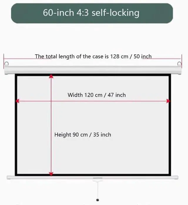 Manual pull-down projector screen: The 60-inch diagonal video screen has a 16:9/4:3 aspect ratio, which is enough to enjoy home movies, video games, or office presentations