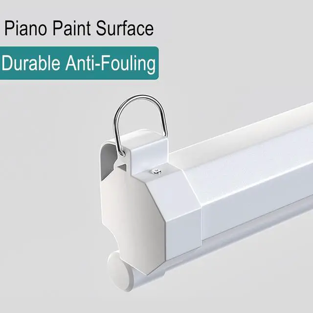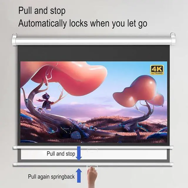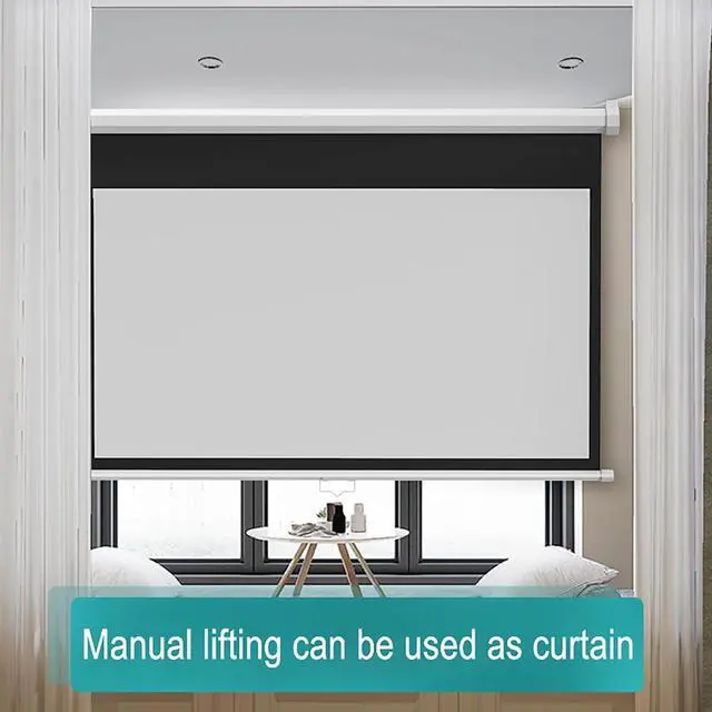 The portable projection screen adopts manual lifting, does not require electricity, can be installed on the wall and ceiling, and is lightweight and convenient.