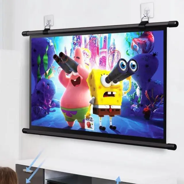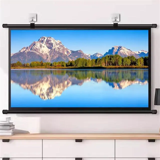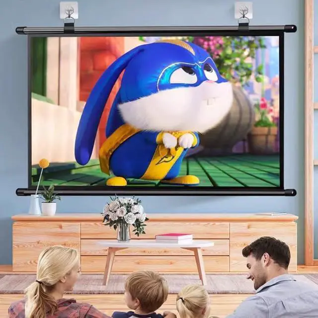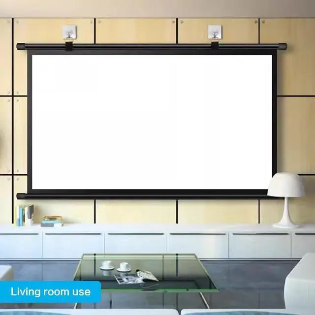 Material: The projection screen can be easily pulled down by hand and features a white fiberglass screen. The fiberglass screen makes the image brighter and more lifelike. In addition, the all-black back panel reduces light transmission and protects against ambient light, providing an excellent projection experience