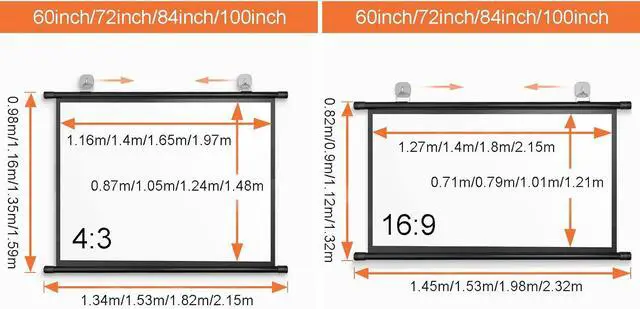 4:3/16:9 screen format, the projection screen provides a wide viewing area, bringing you excellent visual enjoyment, perfect for home theater movies, conferences, schools and indoor and outdoor.