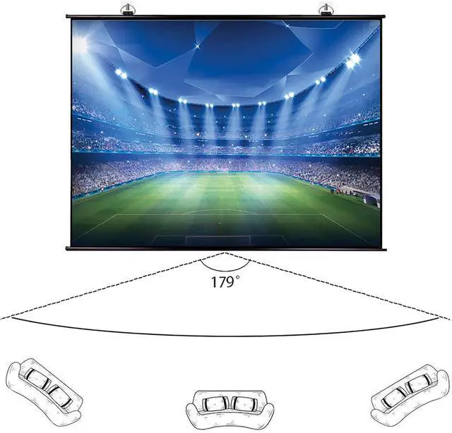 179°Wide Viewing AngleThe projector screen has a large viewing angle of 179 degrees, no need to sit in front of the screen when watching movies. Suitable for home movies, education, presentations, games or outdoor movies.