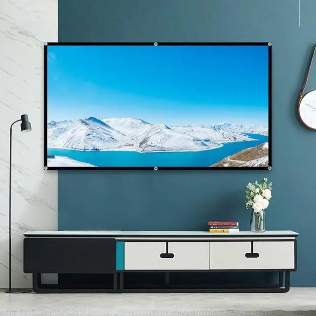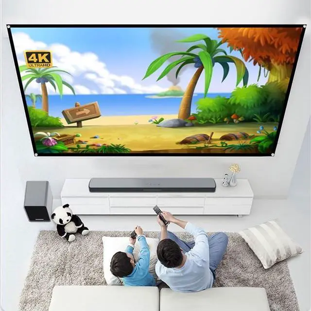 Projector screen utilizes thickened polyester milk silk fabric, enhancing the strength and abrasion resistance. It resists tearing or scratching, extending its service life