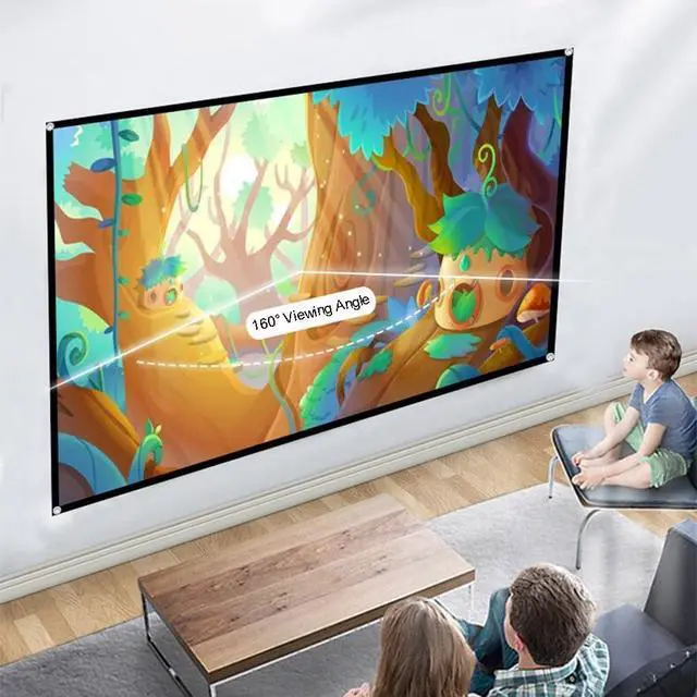 Portable projection screen foldable design facilitates storage and transport, allowing easy placement in corners or packing into backpacks