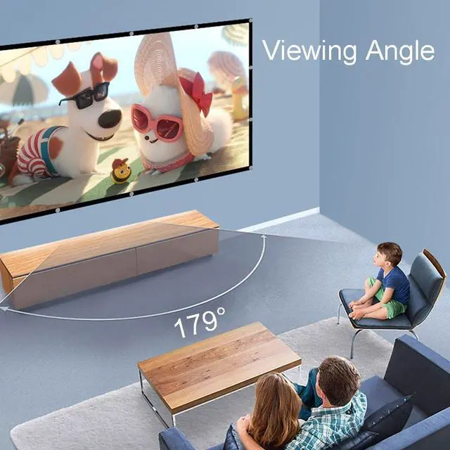 Projection screen is made of thickened polyester fabric with smooth surface to enhance the picture quality and can be folded to prevent wrinkles