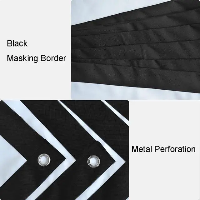 Movie screen is surrounded by metal holes, which can be easily fixed on the wall or bracket by hooks, ropes and other mounting tools