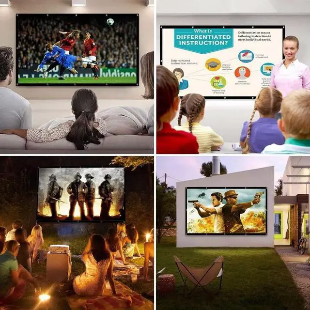 Portable projector screen is not only suitable for indoor use, such as home theater, education, lectures, lectures, offices, classrooms or games, etc., but also suitable for outdoor use