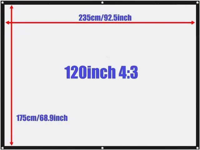 60-120'' projector screen with 16:9/4:3 aspect ratio, the projection screen supports 3D, 4K and Full HD images. Perfect for indoor and outdoor use.