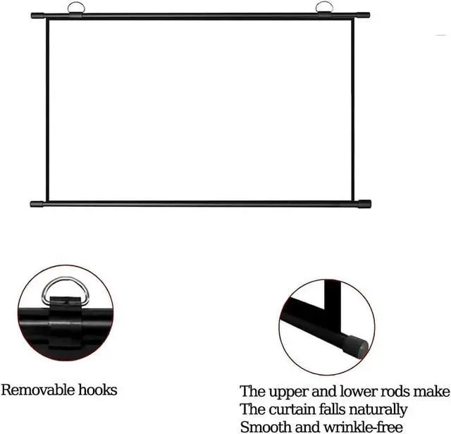 Material: Manual pull-down projection screen made of white fiberglass. The curtain is flat and enhances contrast. With true color rendering and good anti-light transmission effect, it brings you and your family a high-definition visual experience.
