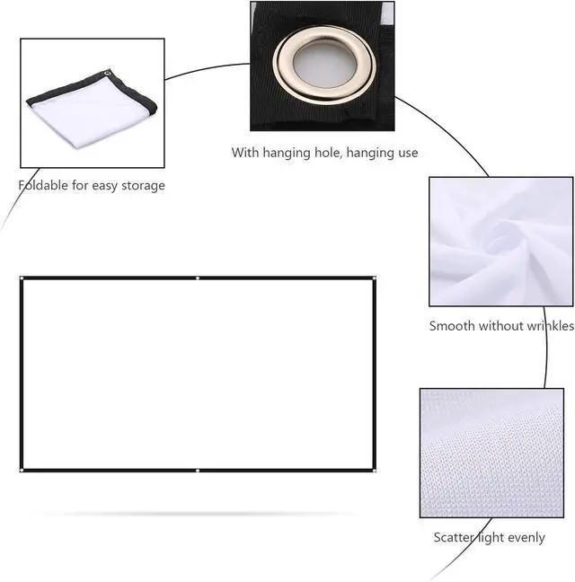 The projection screen is smooth with no wrinkles when folded or flattened. You don't need to waste time hanging the screen for a few days or ironing.