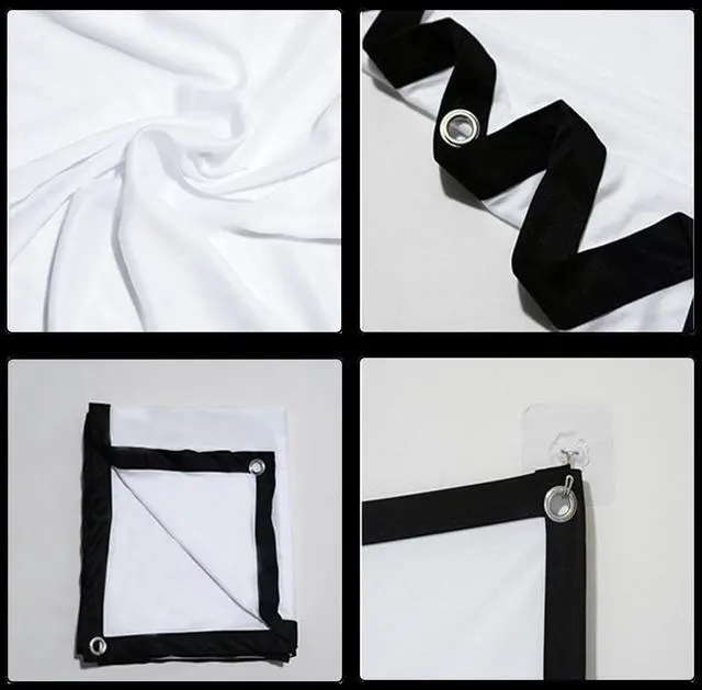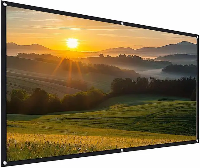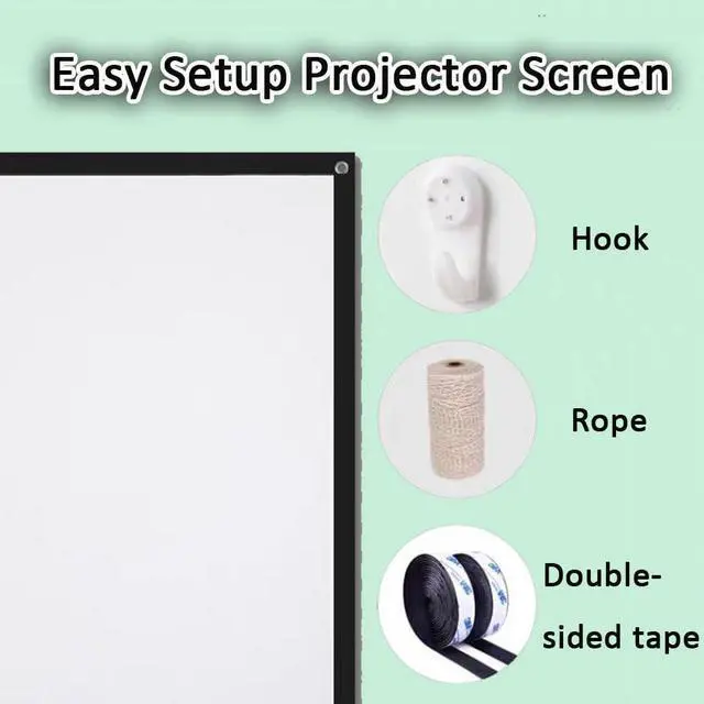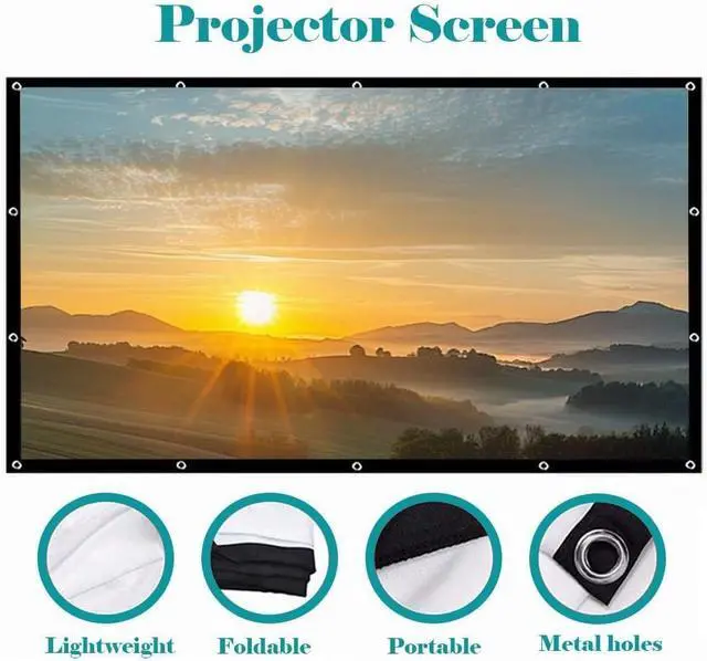 Product Name: Projection Screen Format: 16:9 Product Size: Diagonal Size (WxH) 132x75CM/60in 159X90CM/72in 186x105CM/84in 221x125CM/100in 265x150CM/120in 330x187CM/150in The projector screen adopts 16:9 format to bring reliability for your comfortable experience The projection screen can provide bright images, bring laughter to your family, and improve your life happiness The projection movie screen can be used in most places: home, school, office, church, classroom, backyard Package includes: projection screen x1 Warm Tips: 1. Due to the folding screen transportation, there will be some wrinkles when you receive it, please put some heavy objects on it 2. The creases can be ironed flat, and the dust can be wiped with a wet towel 3. Due to manual measurement, there will be an error of 1-2 inches, please understand 4. Due to different shooting light and display screens, the actual color of the product may be different from the picture, please refer to the actual product