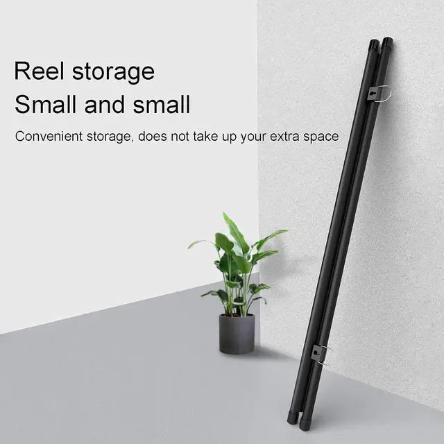? The portable projector screen can be rolled up and will not take up extra space after storage. The top hook design can be moved freely and can be easily hung in any situation.