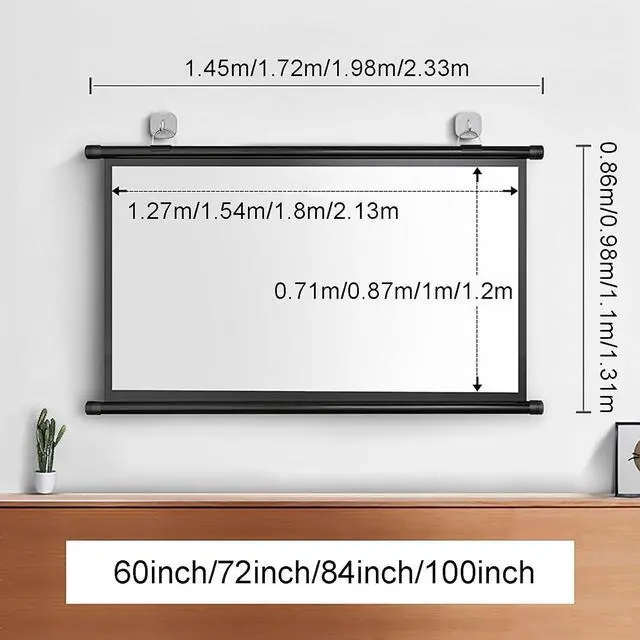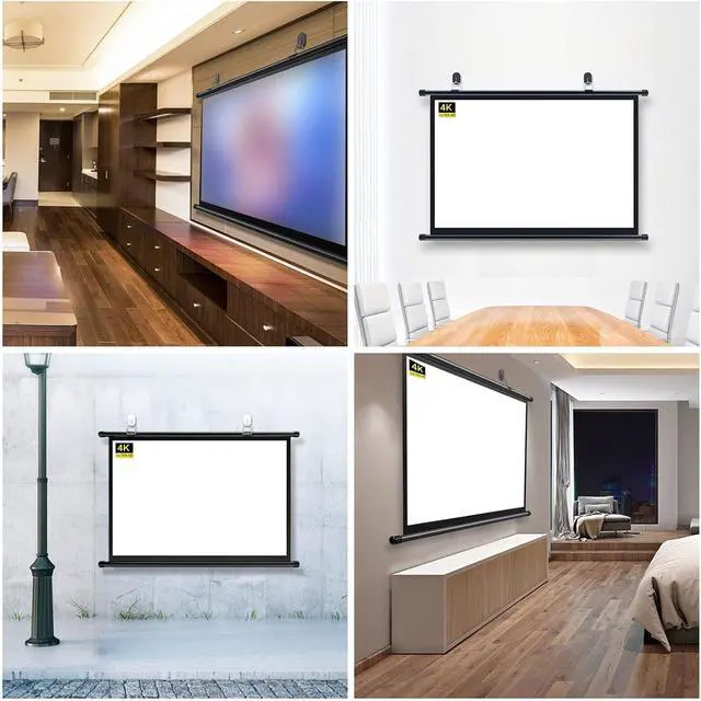 ? 4:3/16:9 screen format, the projection screen provides a wide viewing area, bringing you great visual enjoyment, perfect for home theater movies, playing games, meeting, school and indoor.