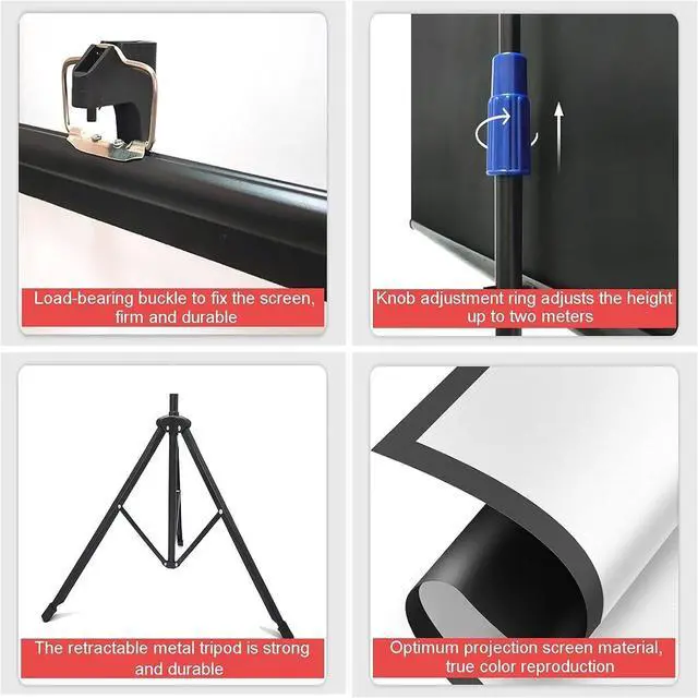 Stable Tripod Stand: The sturdy tripod provides stable support for your projector screen, making setup and teardown quick and easy without the need for mounting or hanging.