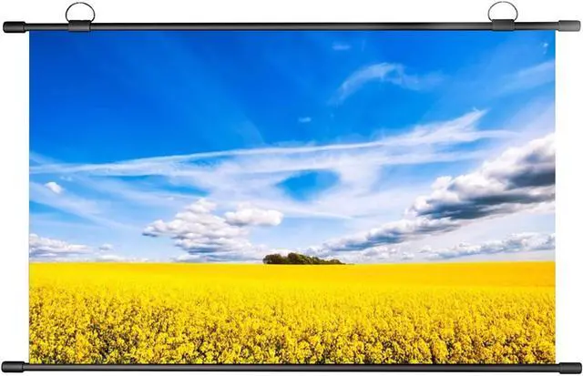 The portable projector screen can be rolled up and will not take up extra space after storage. The top hook design can be moved freely and can be easily hung in any situation.