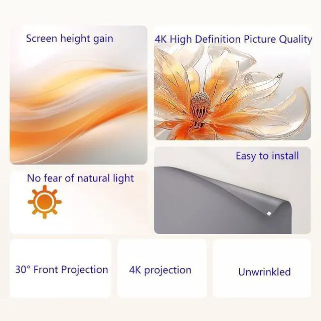 Clearer image: The projection screen can reflect a clearer and more realistic image, with more outstanding colors and a better picture.
