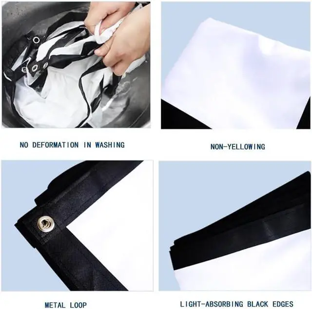Foldable: You can fold the screen into a small size and then stash it away or put it in your backpack. The projection screen is made of soft-touch, resilient polyester fiber, which ensures that it will not wrinkle when folded or compressed