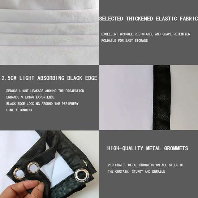 High-quality materials: Our wrinkle-free white projection screens are made of polyester fabric, which is sturdy and durable, ensuring long-lasting performance