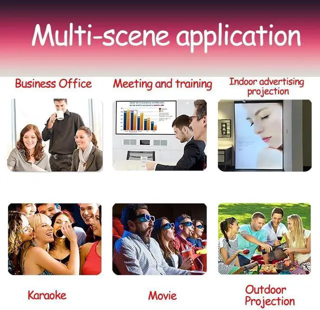 Versatile: Can be applied to home theater, classroom training, conference room presentations, public displays, etc. It is suitable for outdoor camping movies and outdoor cinemas